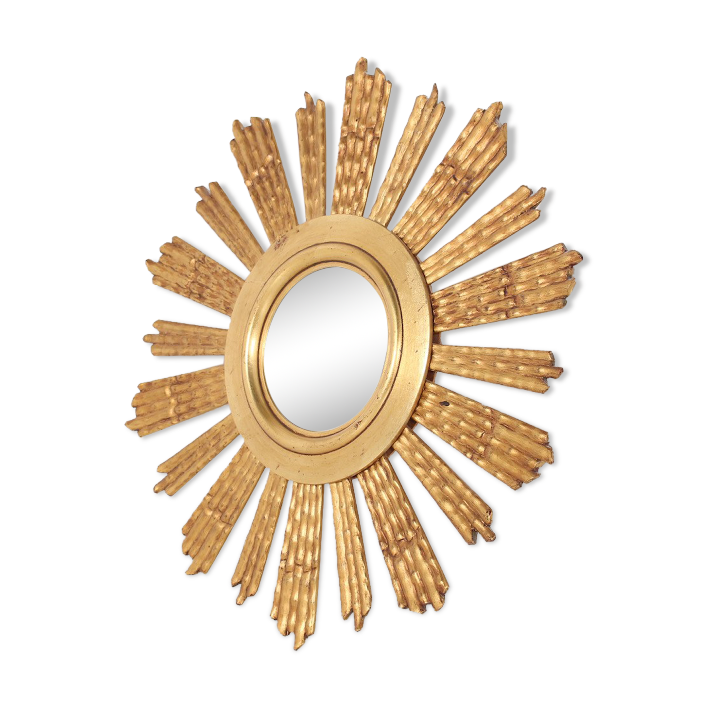On en trouve facilement en brocante ou sur ebay à partir de 60€, et jusqu'à 150/200€. Nous utilisons des cookies et des outils similaires pour faciliter vos achats, fournir nos services, pour comprendre comment les clients utilisent nos services afin de pouvoir apporter des améliorations, et pour présenter des publicités, y compris des publicités basées sur les centres d'intérêt. Miroir rond new noir et patine dorée à l'ancienne avec oeil de sorcière diam 19 cm. Le miroir œil de sorcière est dorénavant un objet de décoration pas cher. Un miroir oeil de sorcière de taille grande, vu de côté, installé dans une entrée ameublée dans un style classique. Ce miroir oeil de sorcière en forme de soleil si particulier est une icône du design français des années 50/60's. Origine du miroir ce miroir est né avec la renaissance française. On notera qu'un rayon est abimé à son extrémité, voir photo. La patine à l'or fin est magnifique. Il a une restauration voir photo mais rien de méchant, miroir des années 50, 60. Superbe miroir soleil œil de sorcière années 60 en. Miroir oeil de sorciere soleil en métal, glace bombée diamètre du miroir : Les photos sont éloquentes, sa forme est superbe et en bel état, le miroir non convexe est impeccable.